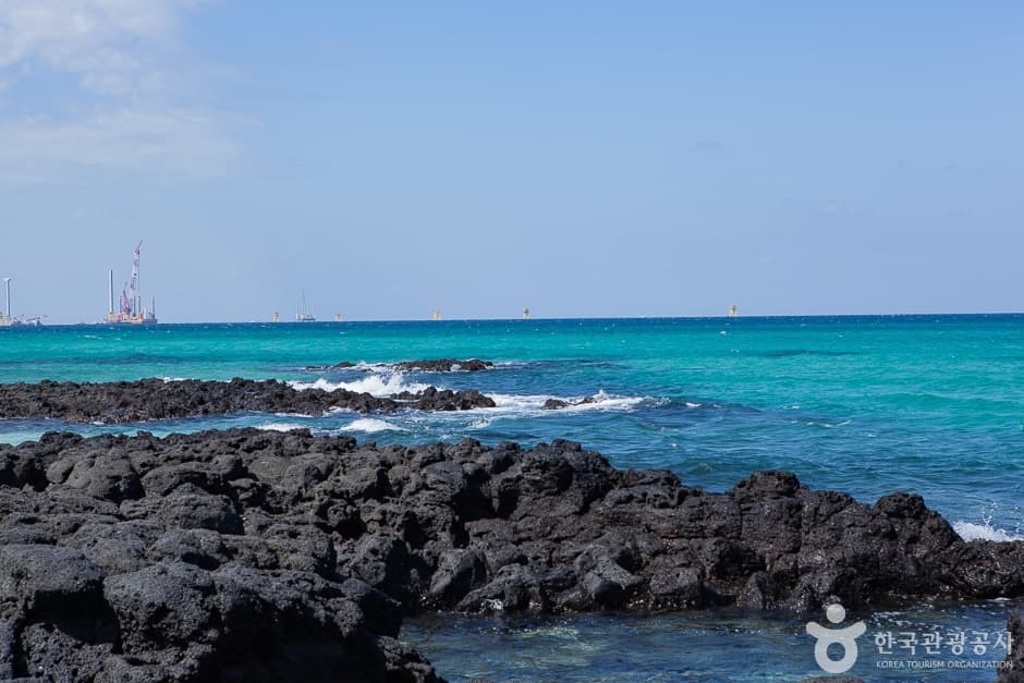 곽지해수욕장은 지하수가 솟는 특이한 해변이라 수온이 낮고 바닷물이 아주 맑아 물놀이 하기 제격입니다.
